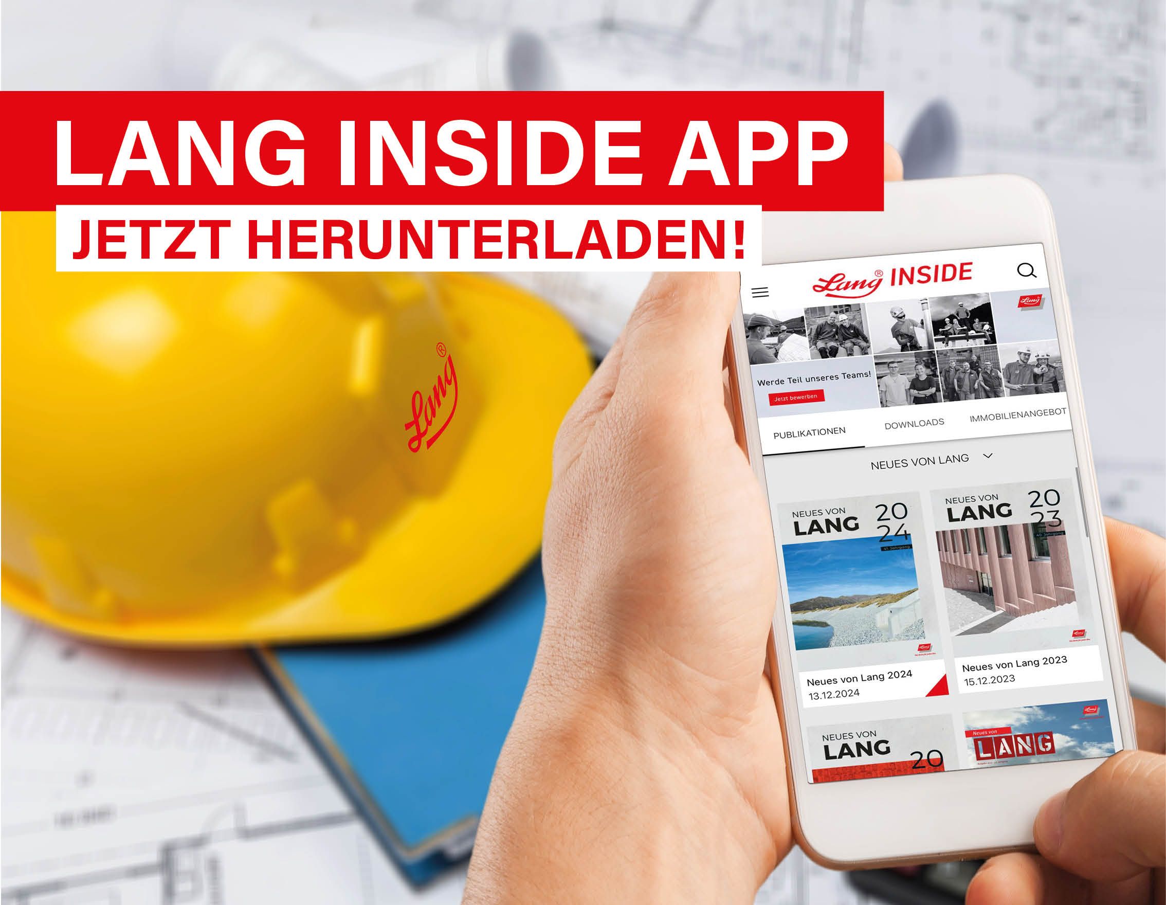 Neues von Lang 2025 ist da - jetzt lesen! » Jetzt die LANG INSIDE App herunterladen » Wir verwirklichen Ihr Bauvorhaben » Betonfertigteile höchster Qualität » Wir sind Ihr Generalunternehmer » Baustoffe aus eigener Produktion » Baumärkte » Baustoffe » Offene Stellen » KFZ Werkstatt » Ing. Hans Lang GmbH | Alte Landstraße 44 | 6123 Terfens | +43 5242 6905 – 0 | office@langbau.atAnsprechpartnerStandorteImpressumDatenschutzAGBDownloadsAnsprechpartnerStandorteImpressumDatenschutzAGBDownloads